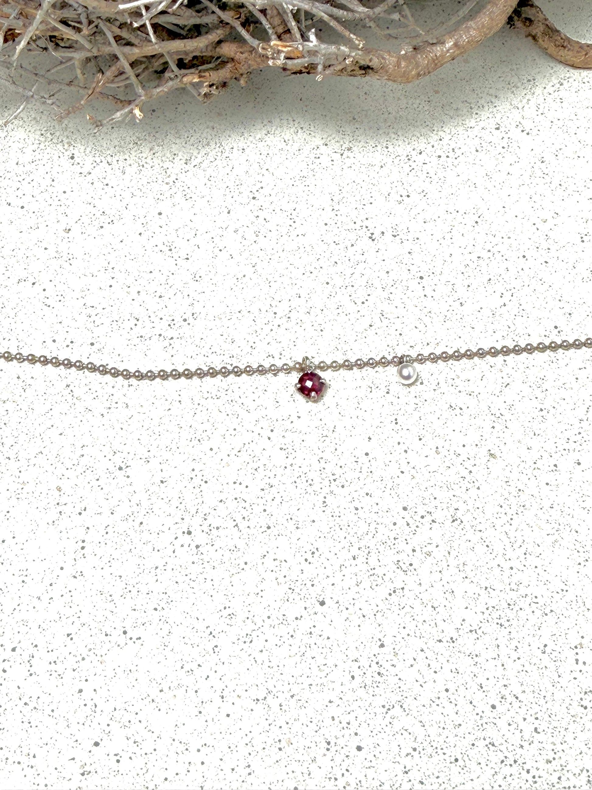 925 Silberarmband · Granat & Perle