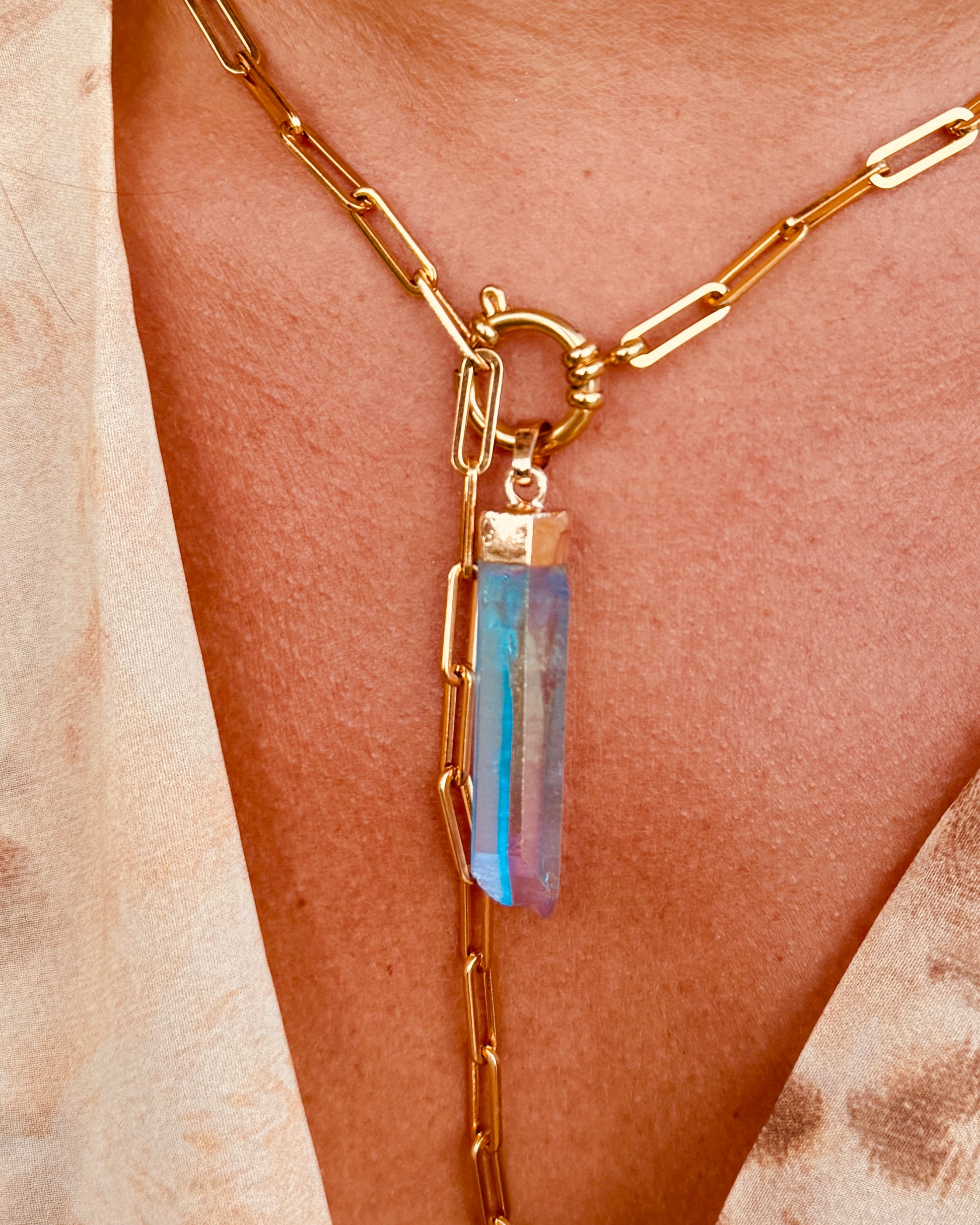 Eine alchemistische Verbindung von reinem Gold und klarem Bergkristall erschafft einen vibrierenden, blauen Kristall, der mehr ist als die Summe seiner Teile. Aqua Aura wird auch als „Stein der spirituellen Erhebung“ bezeichnet und fasziniert durch seine besondere Strahlkraft.