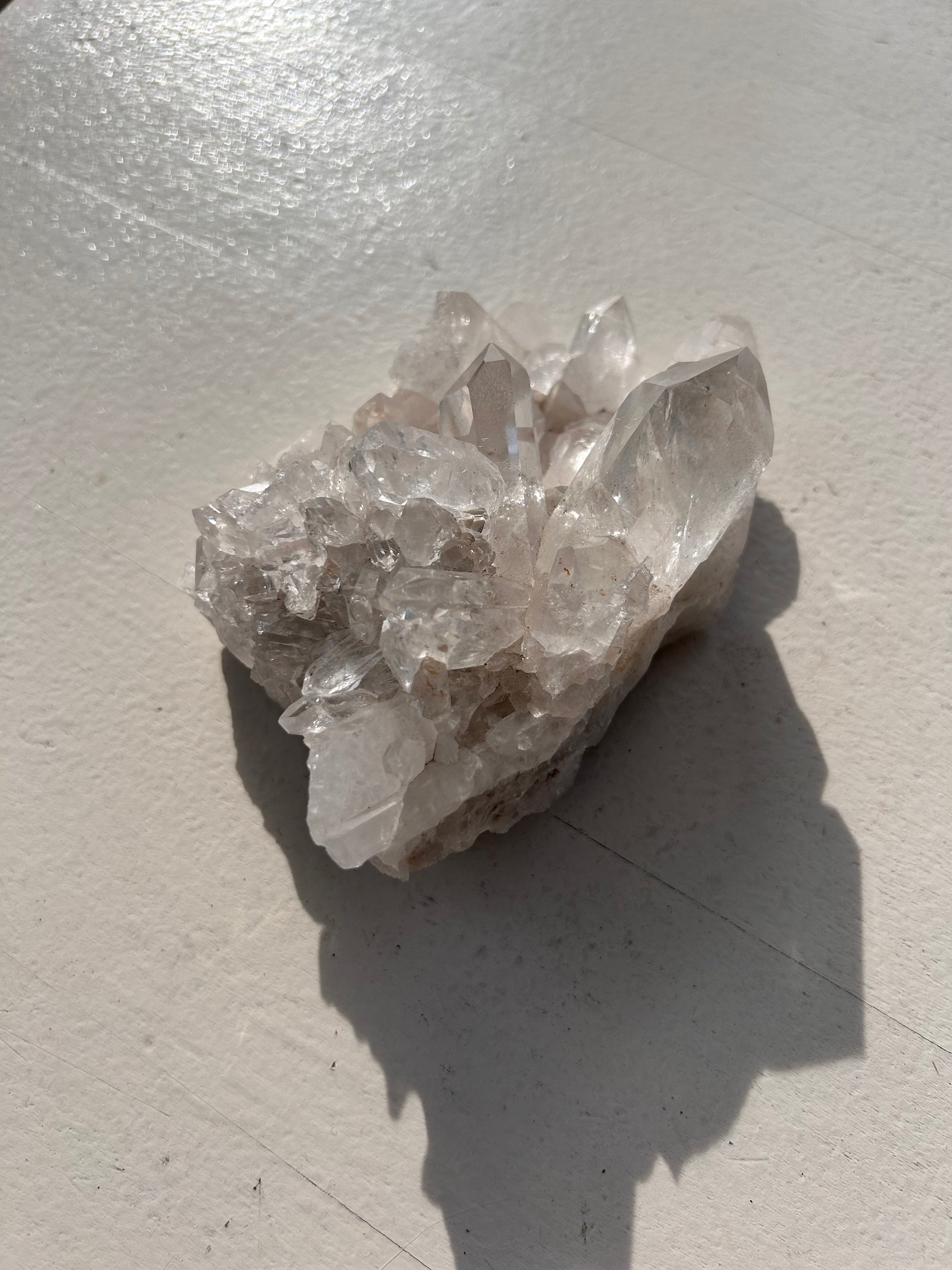 Ob als Blickfang in deinem Wohnzimmer, als inspirierendes Element in deinem Arbeitsbereich oder als Geschenk für einen besonderen Menschen - diese Bergkristallstufe ist ein Symbol für Reinheit und Klarheit.