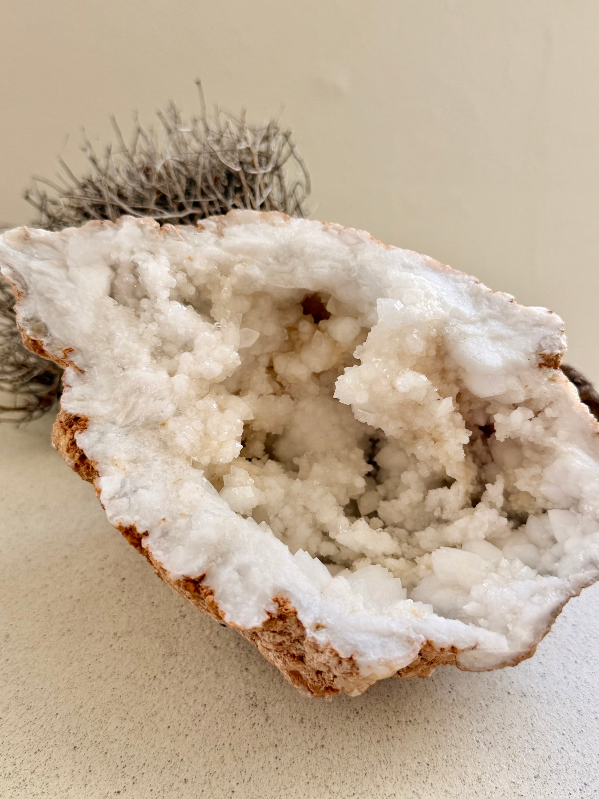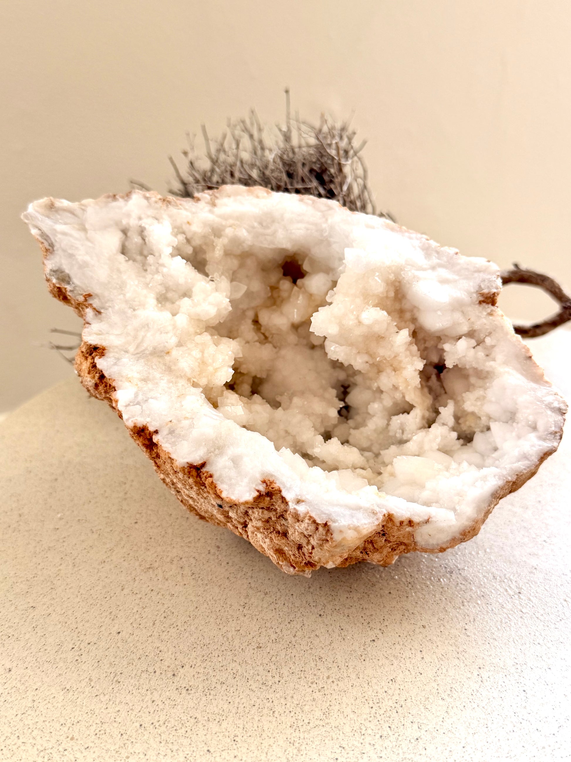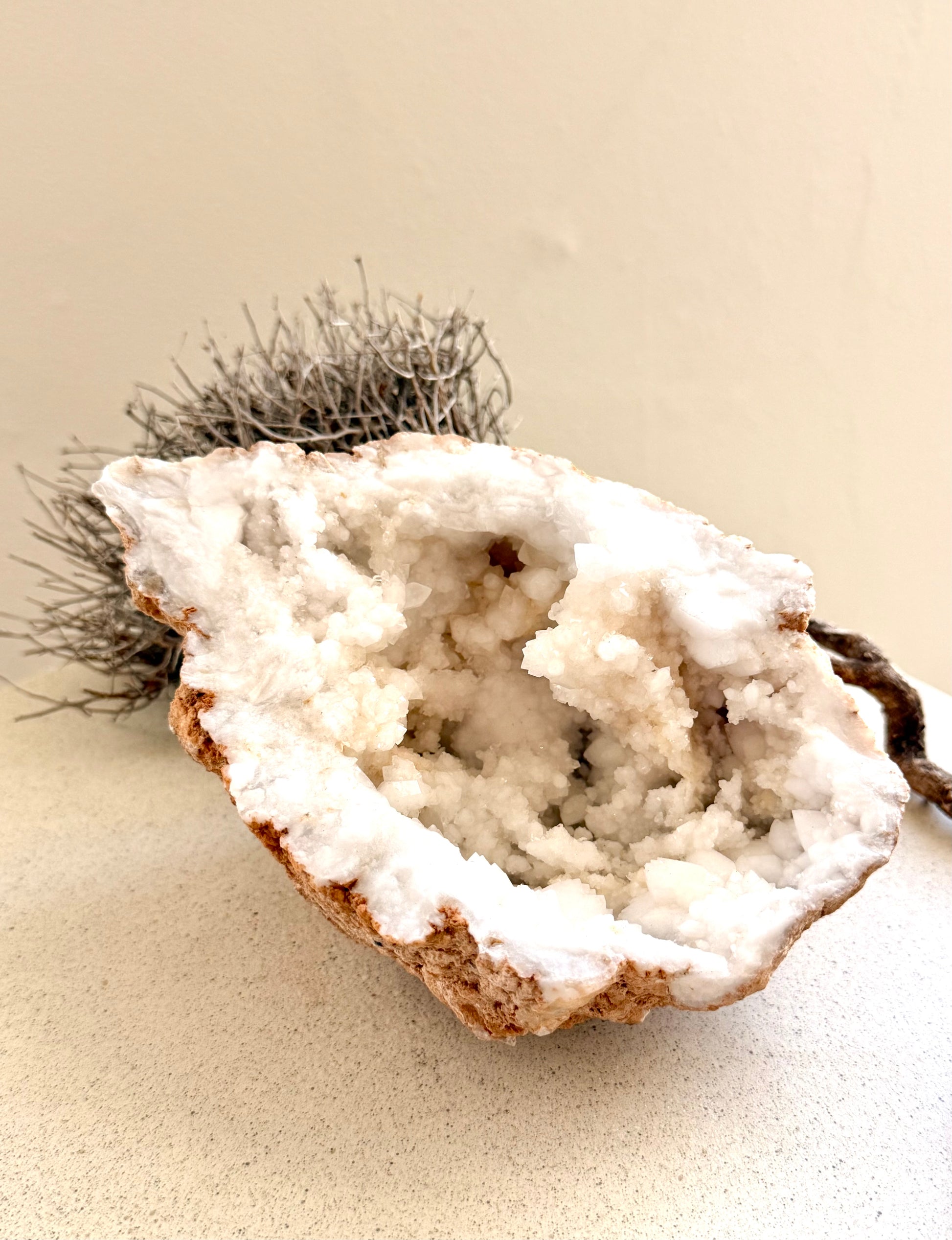 Diese halbe Quarz-Geode ist mehr als ein Stein – sie ist ein stiller Raum in sich.