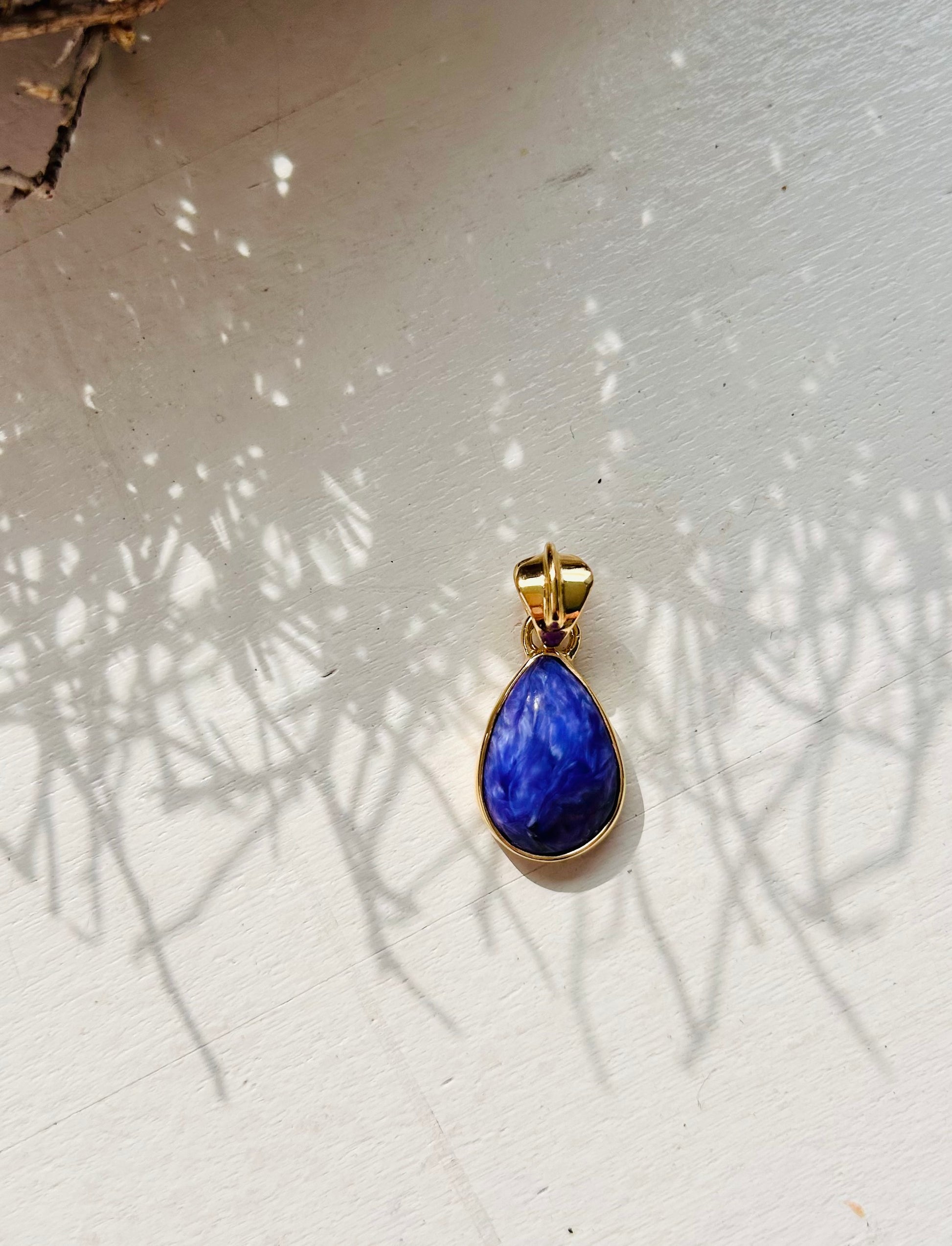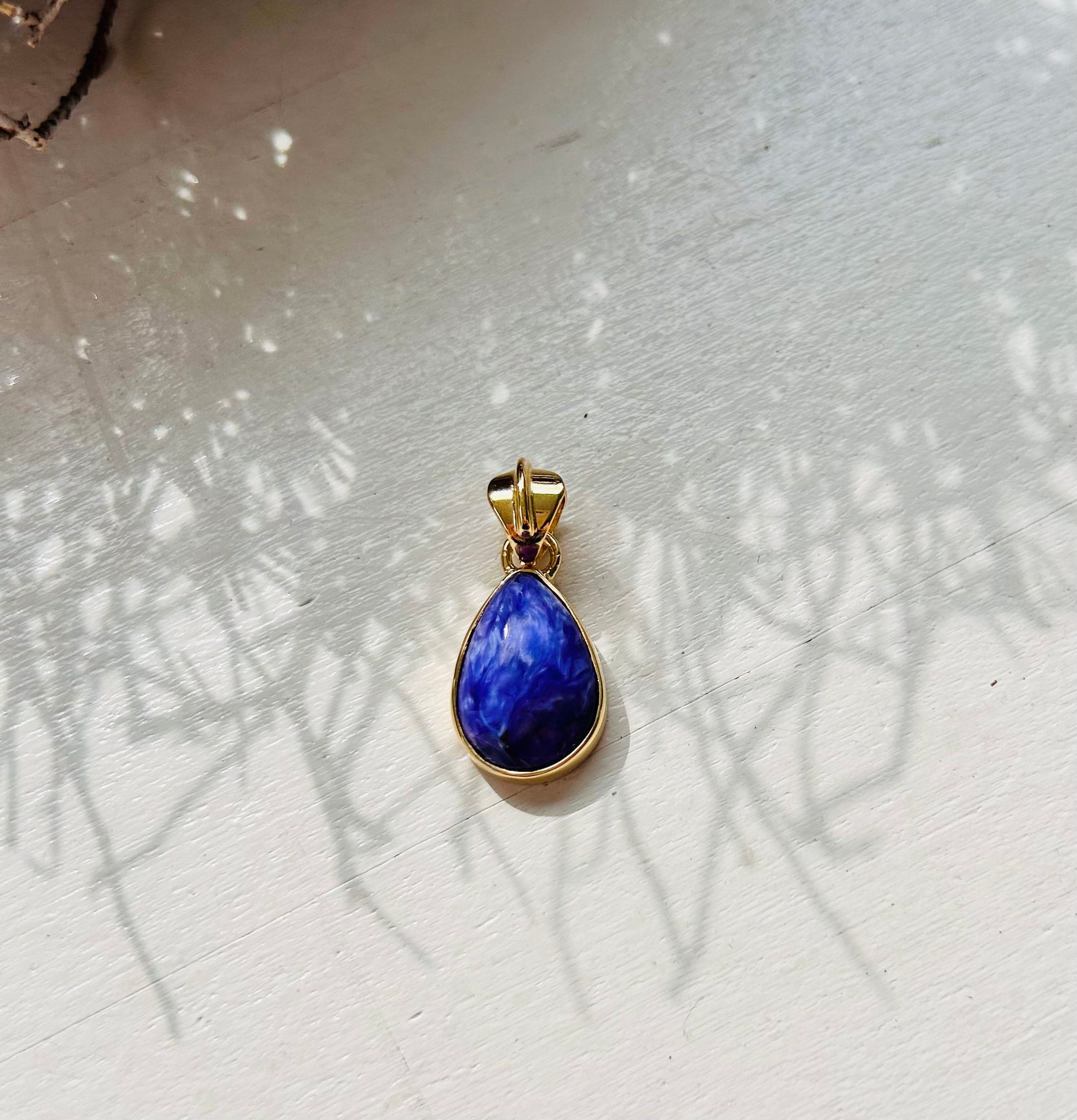 Pendentif Charoïte – Argent 925 plaqué or, environ 2,5 cm