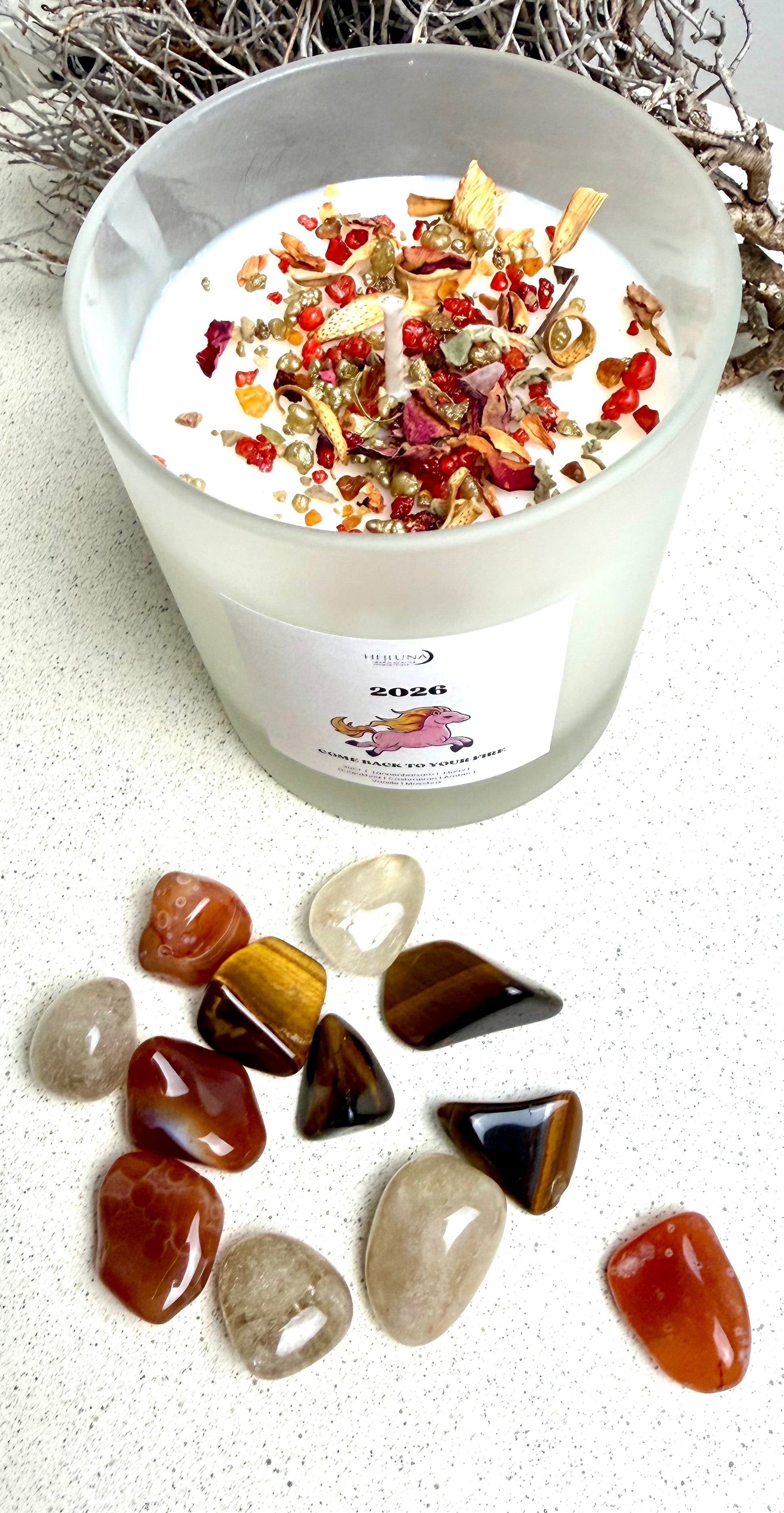 Zu dieser Kerze wählst du einen Stein, der dich durch das Jahr des Feuer-Pferdes begleitet.