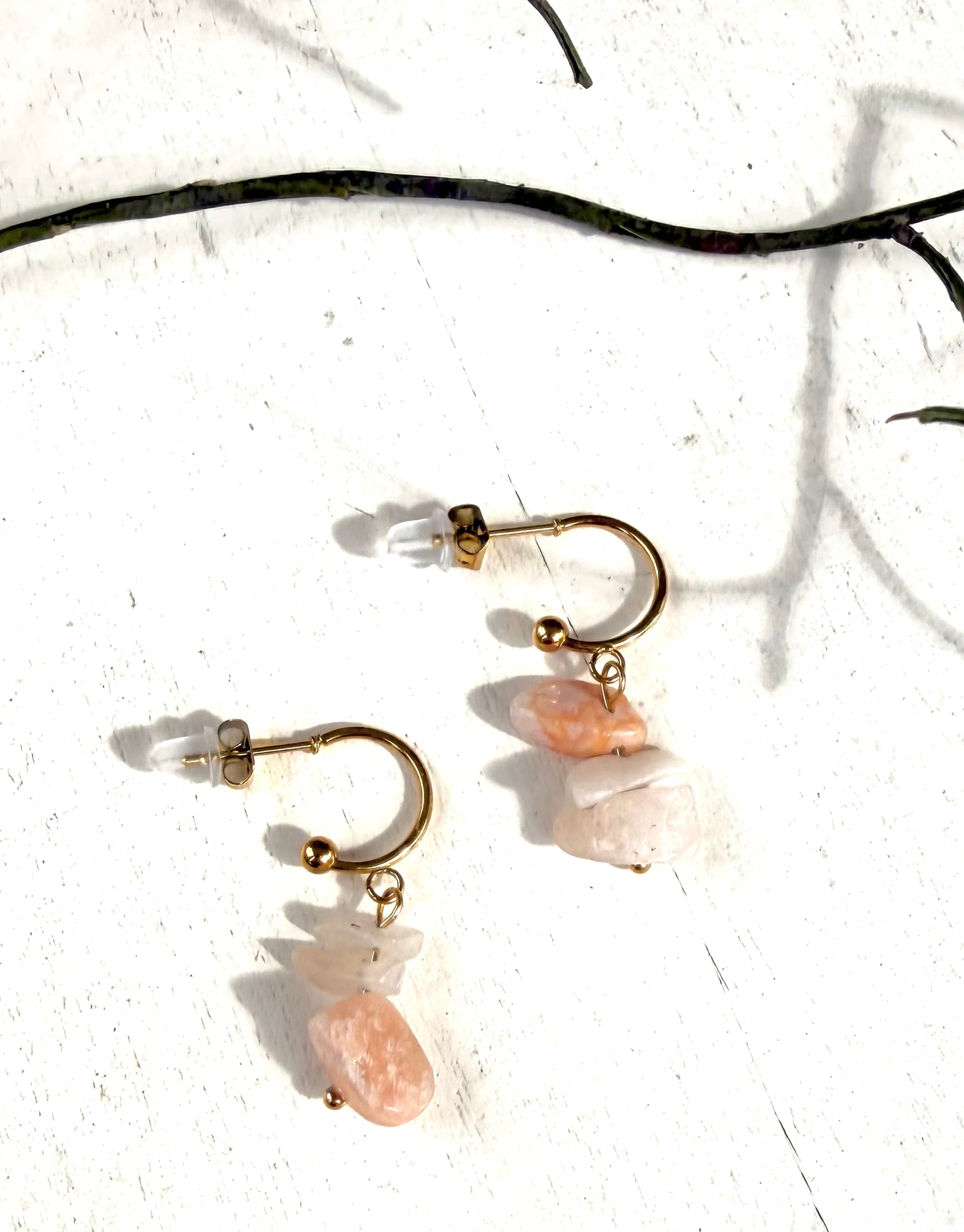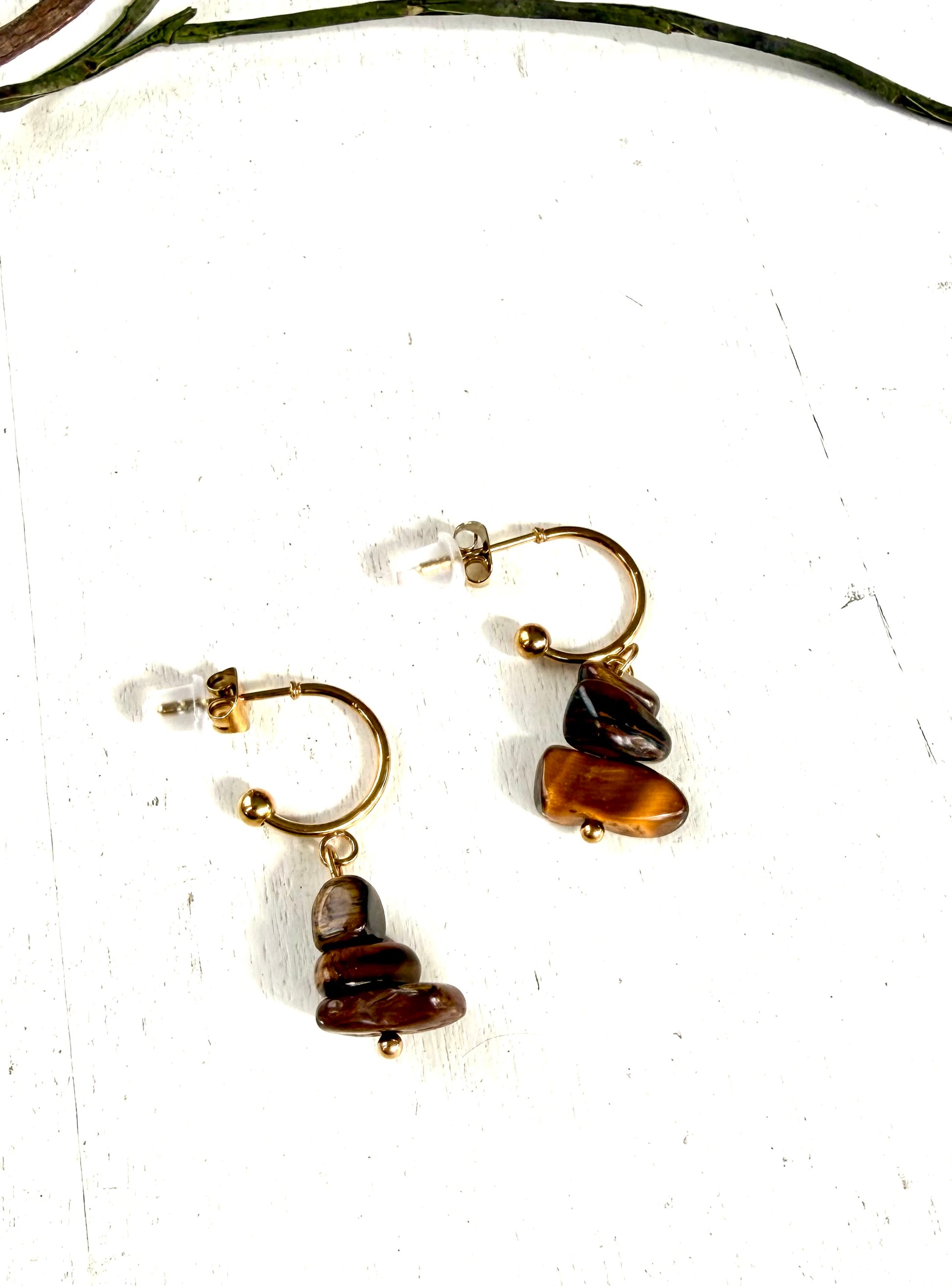 Halbcreolen · Ohrstecker Tigerauge & Rosenquarz | Einzelstücke