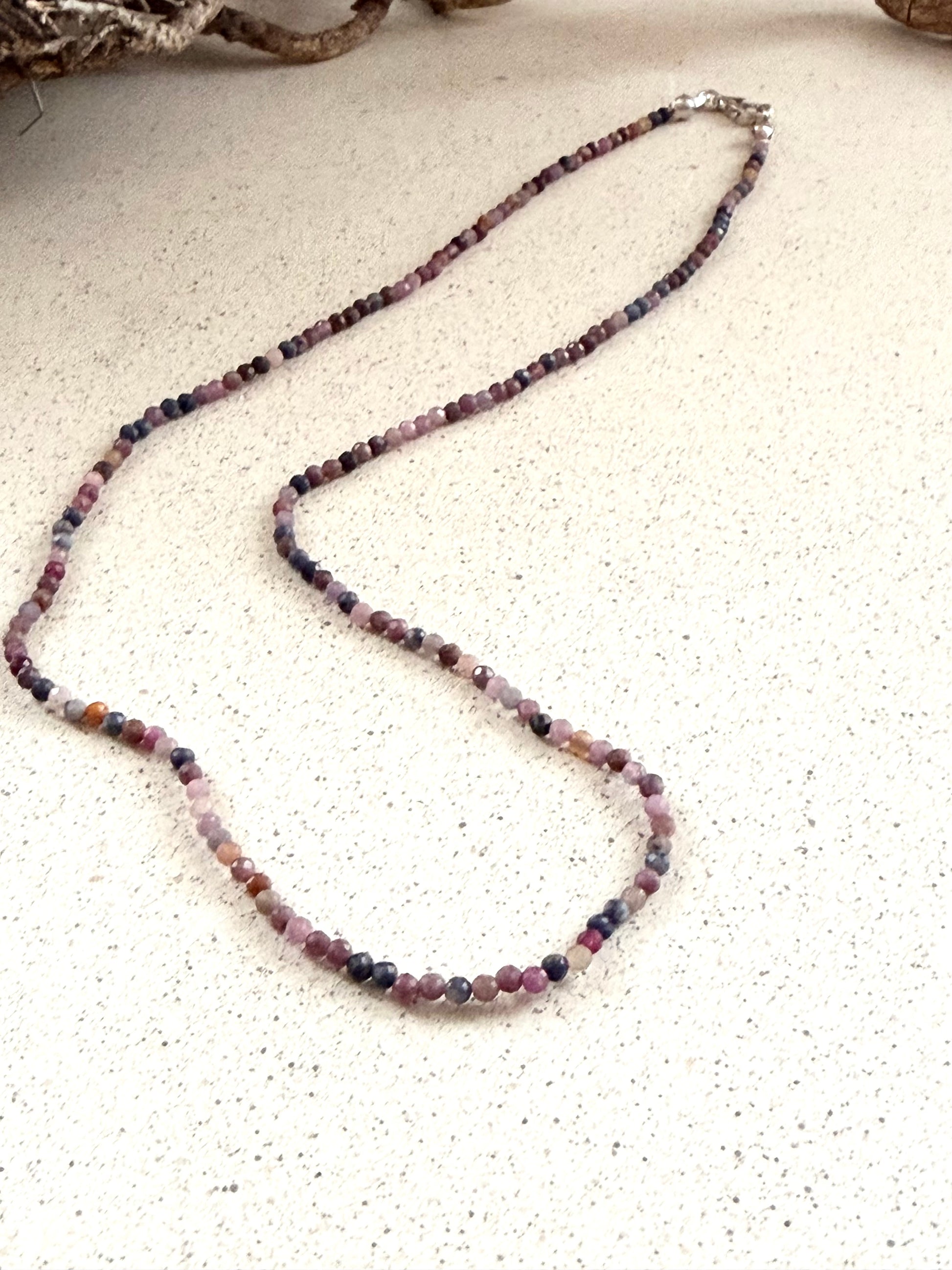 Rubin-Saphir Kette – Kugeln 2 mm (45 cm) mit Silberverschluss