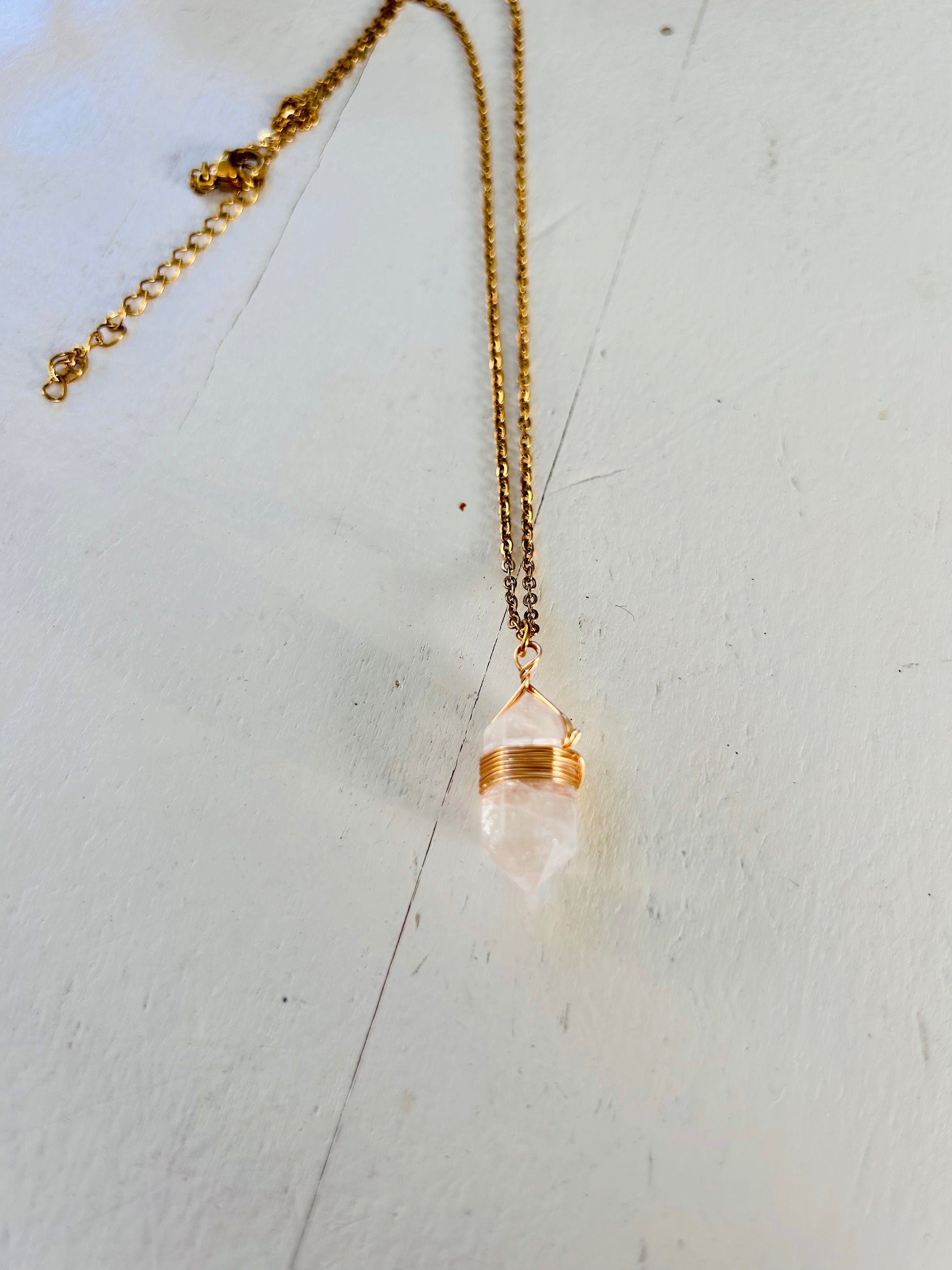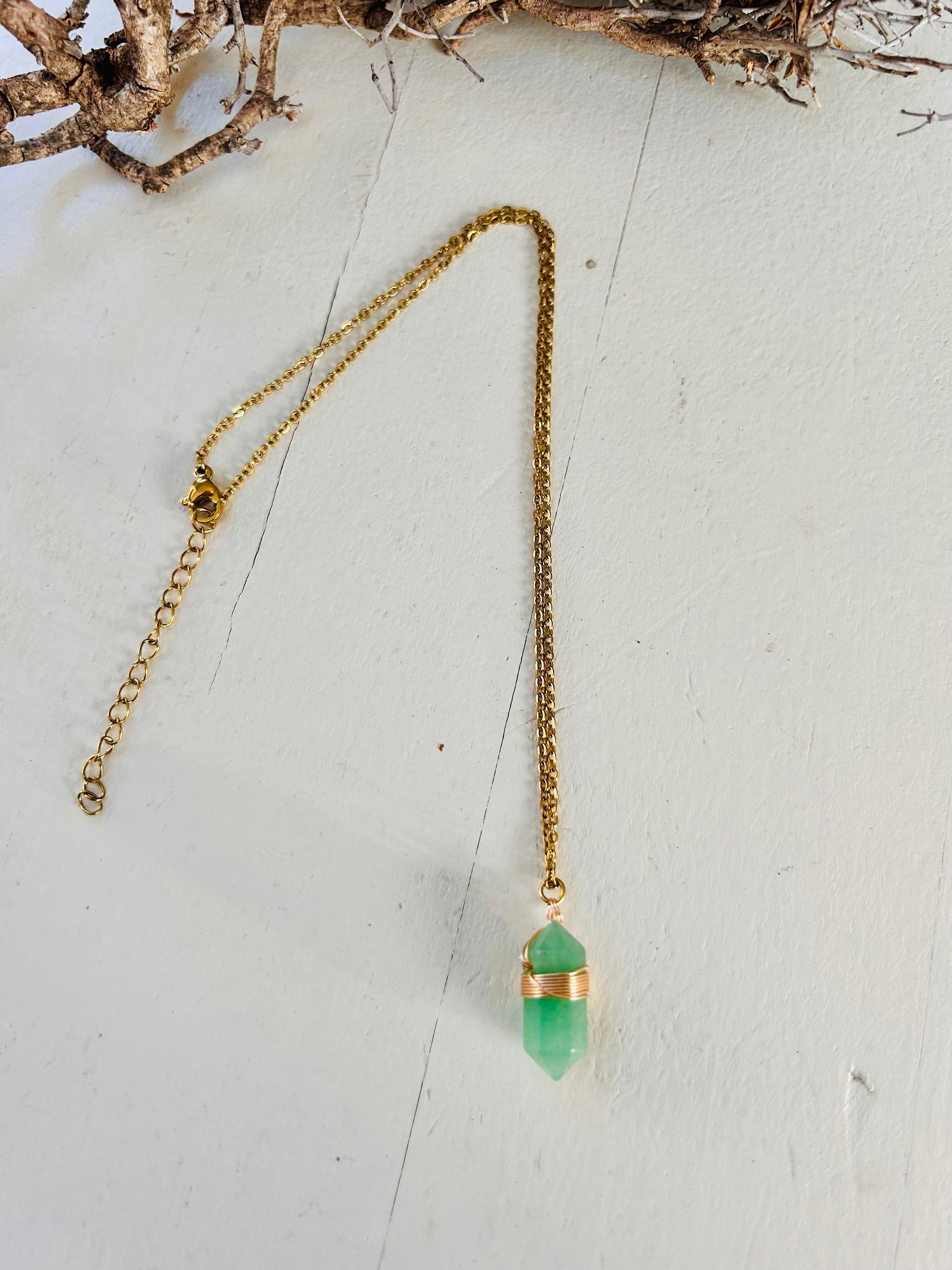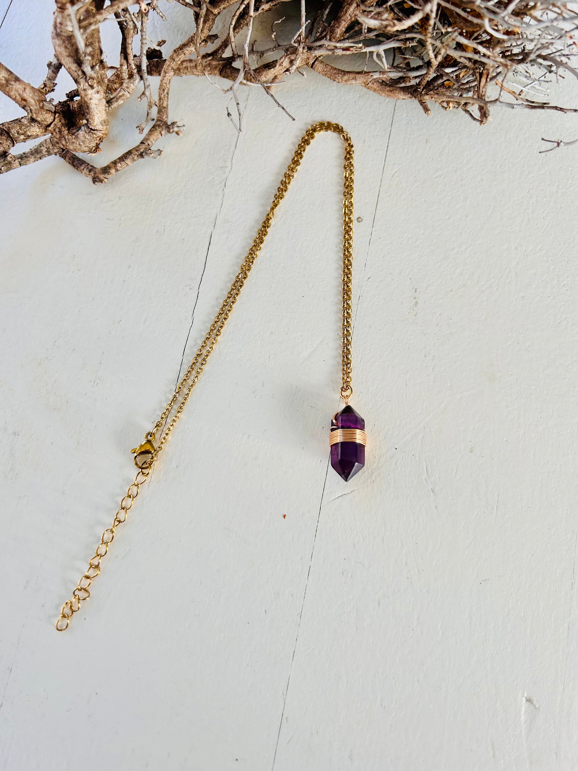 Kristall-Doppelender Kette · Amethyst · Bergkristall · Aventurin