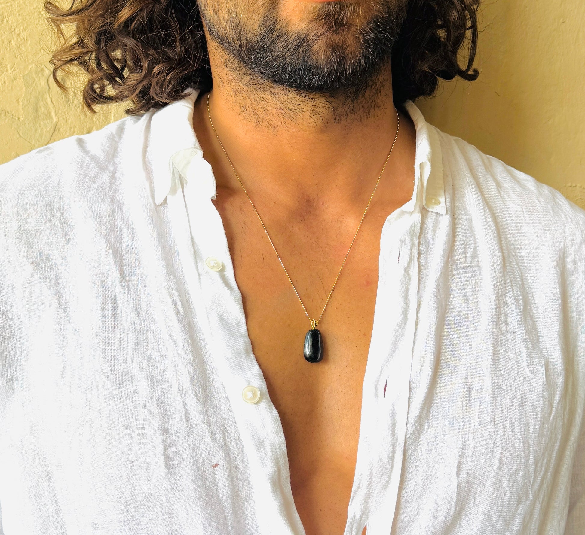 Pendentifs en diopside étoilé noir · environ 3–4 cm · avec œillet en argent ou en or