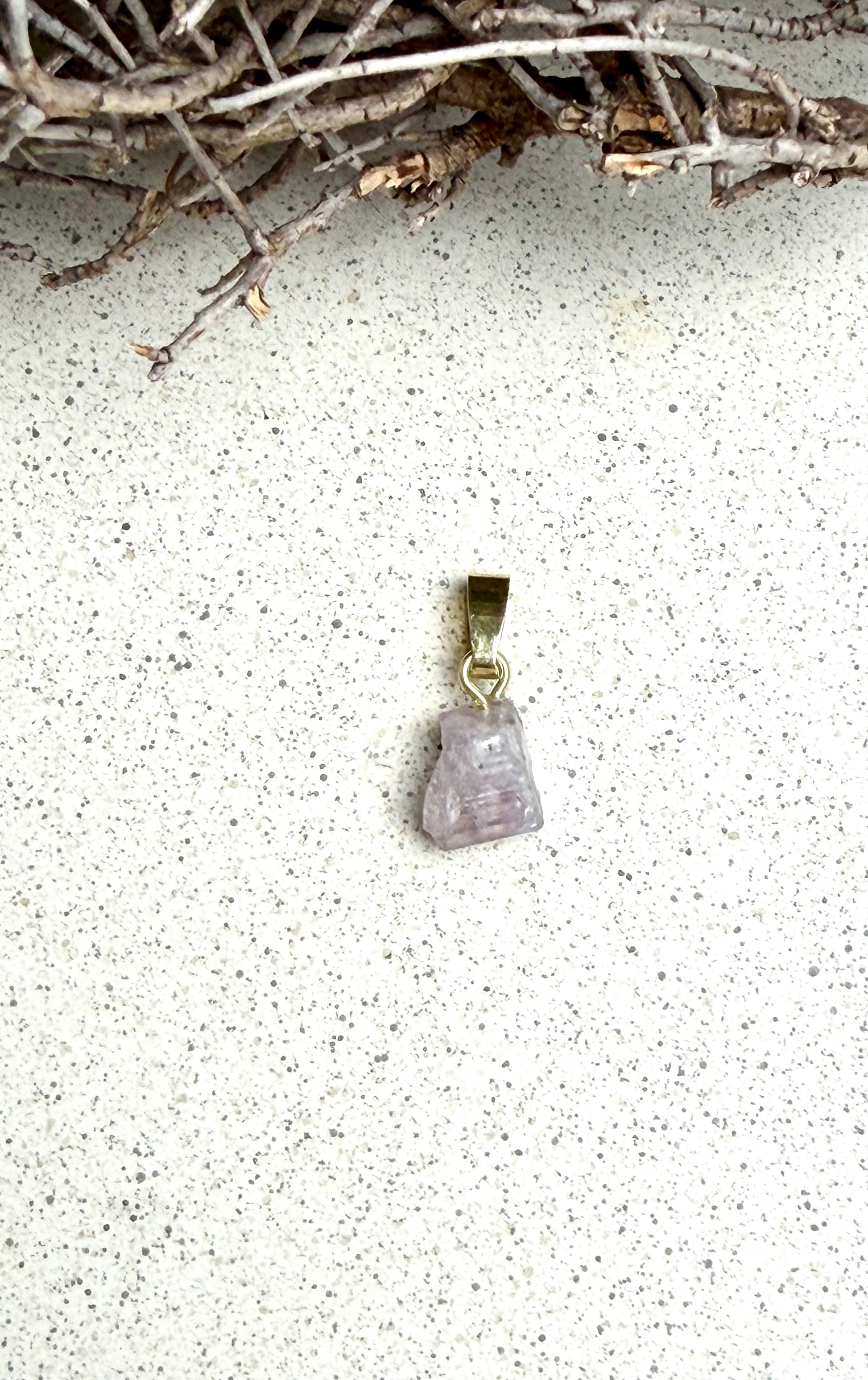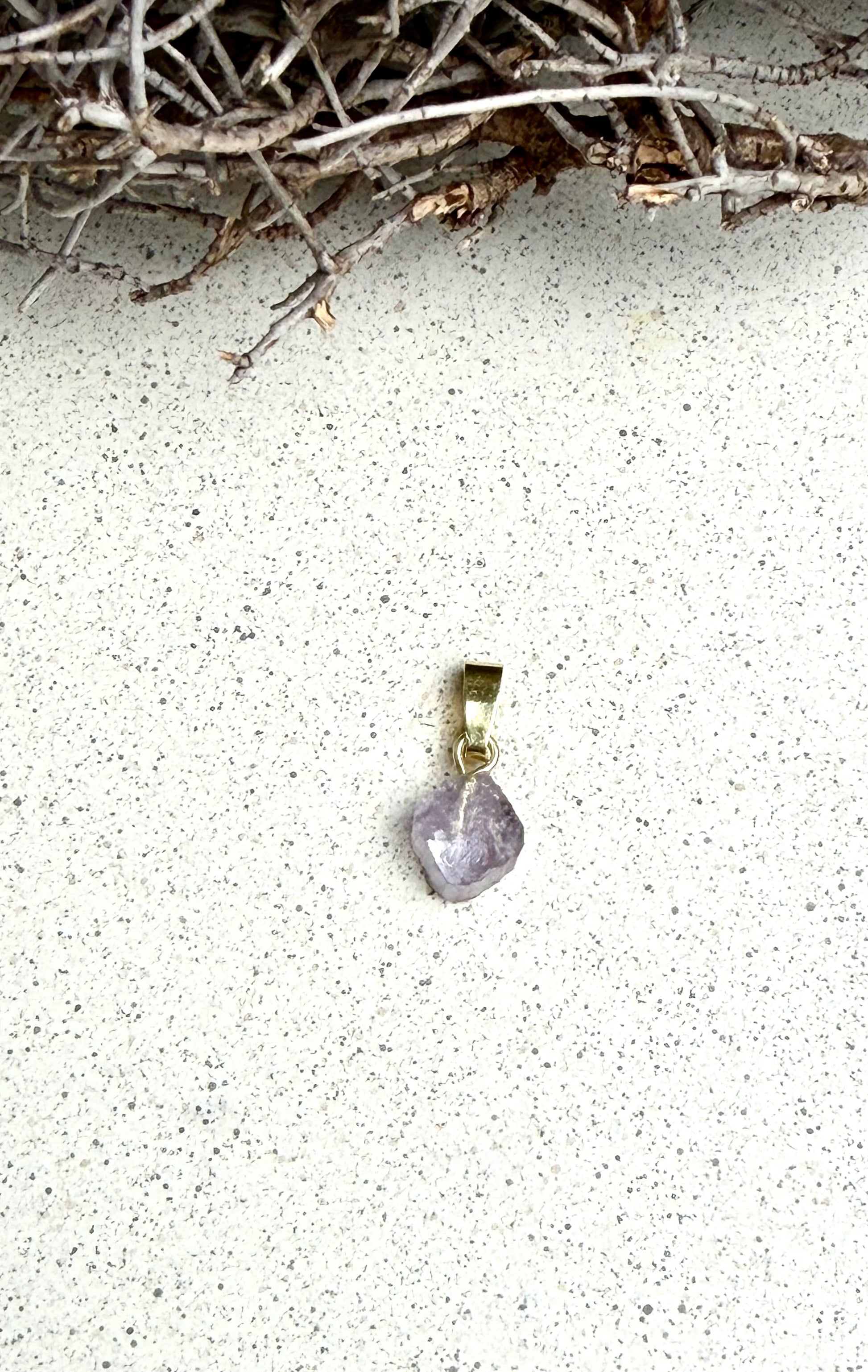 zarter Anhänger in sanftem Violett, ca. 1,9-2,5 cm (inkl. Öse) – ein feiner Begleiter, der Ruhe und Klarheit ausstrahlt.
